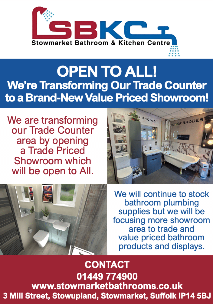 With over 90 years of combined experience in the plumbing, bathroom, and kitchen design industry, we proudly serve the local Suffolk community from our location just outside Stowmarket, conveniently off the A14.